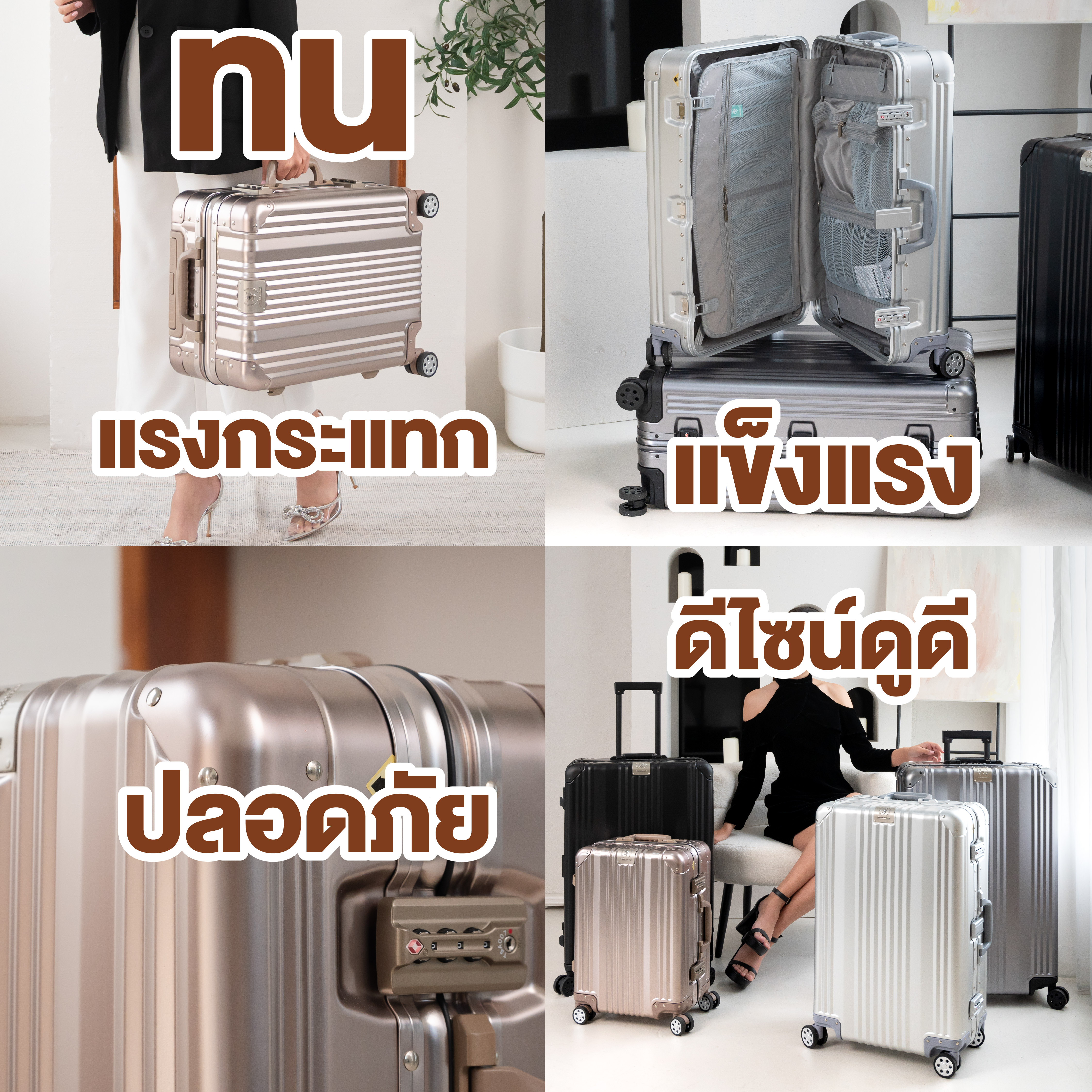 กระเป๋าเดินทางเฟรมอลูมิเนียม: เหมาะสำหรับนักเดินทางที่ต้องการความทนทาน ปลอดภัย กันน้ำ ดีไซน์เรียบหรู และเดินทางบ่อยๆ