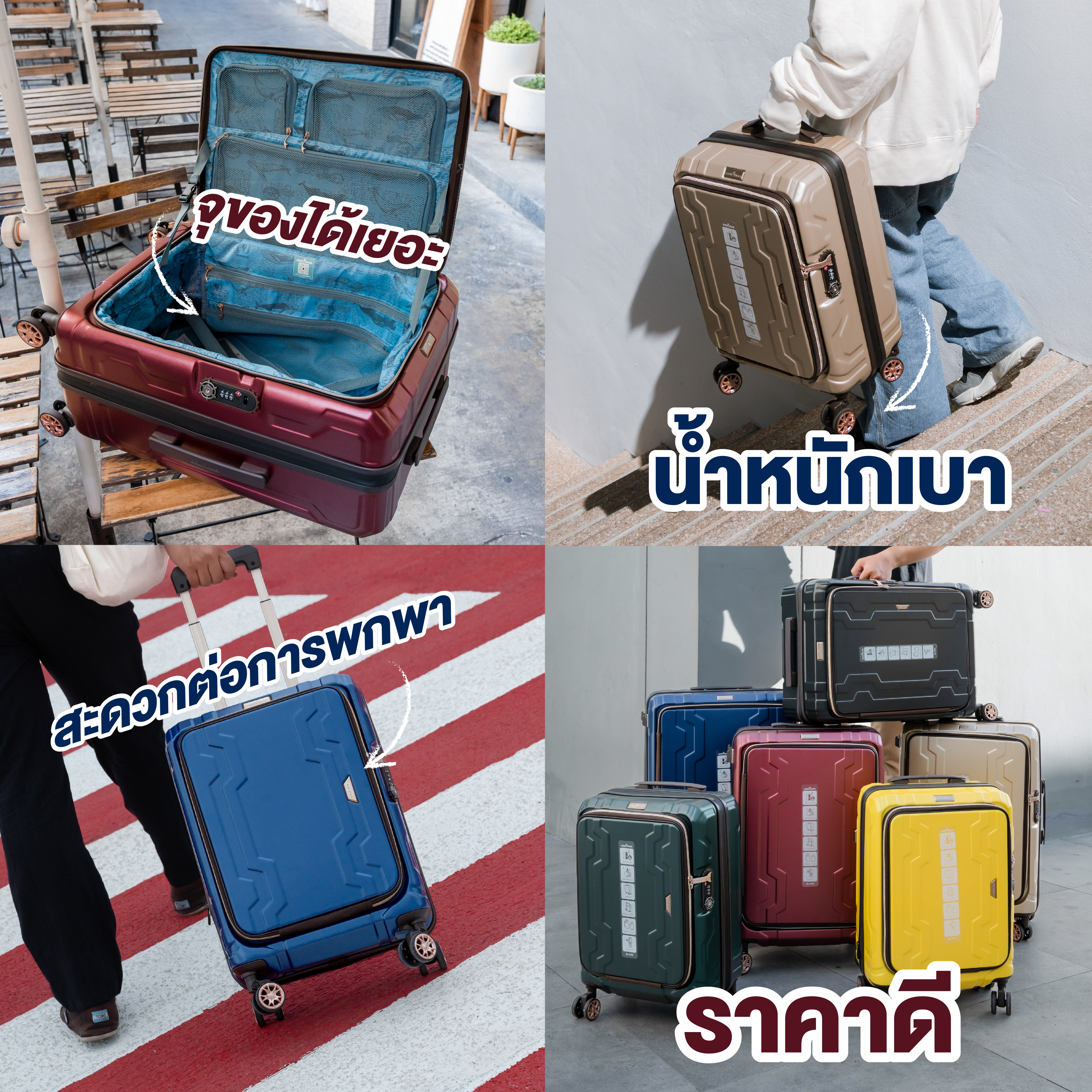 หากกำลังมองหากระเป๋าเดินทางซิป ขอแนะนำ กระเป๋าเดินทางซิป LEGEND WALKER รุ่น 5205 มีให้เลือกตั้งแต่ขนาด 19 นิ้ว 23 นิ้ว และ 26 นิ้ว วัสดุตัวกระเป๋าทำจาก Polycarbonate Mix ABS น้ำหนักเบา ยืดหยุ่น ทนทาน กระเป๋าเดินทางแบบฝาหน้า เปิดด้านหน้า สะดวกต่อการหยิบของสัมภาระ สามารถรูดซิปเพื่อเพิ่มพื้นที่จัดเก็บได้สูงถึง 5 เซนติเมตร โดยมีความจุเพิ่มขึ้น 30% ซิปคุณภาพสูง มาตรฐานญี่ปุ่น ดูรายละเอียดเพิ่มเติมได้ที่ https://jptravelstore.com/TH/BLUEWHALE