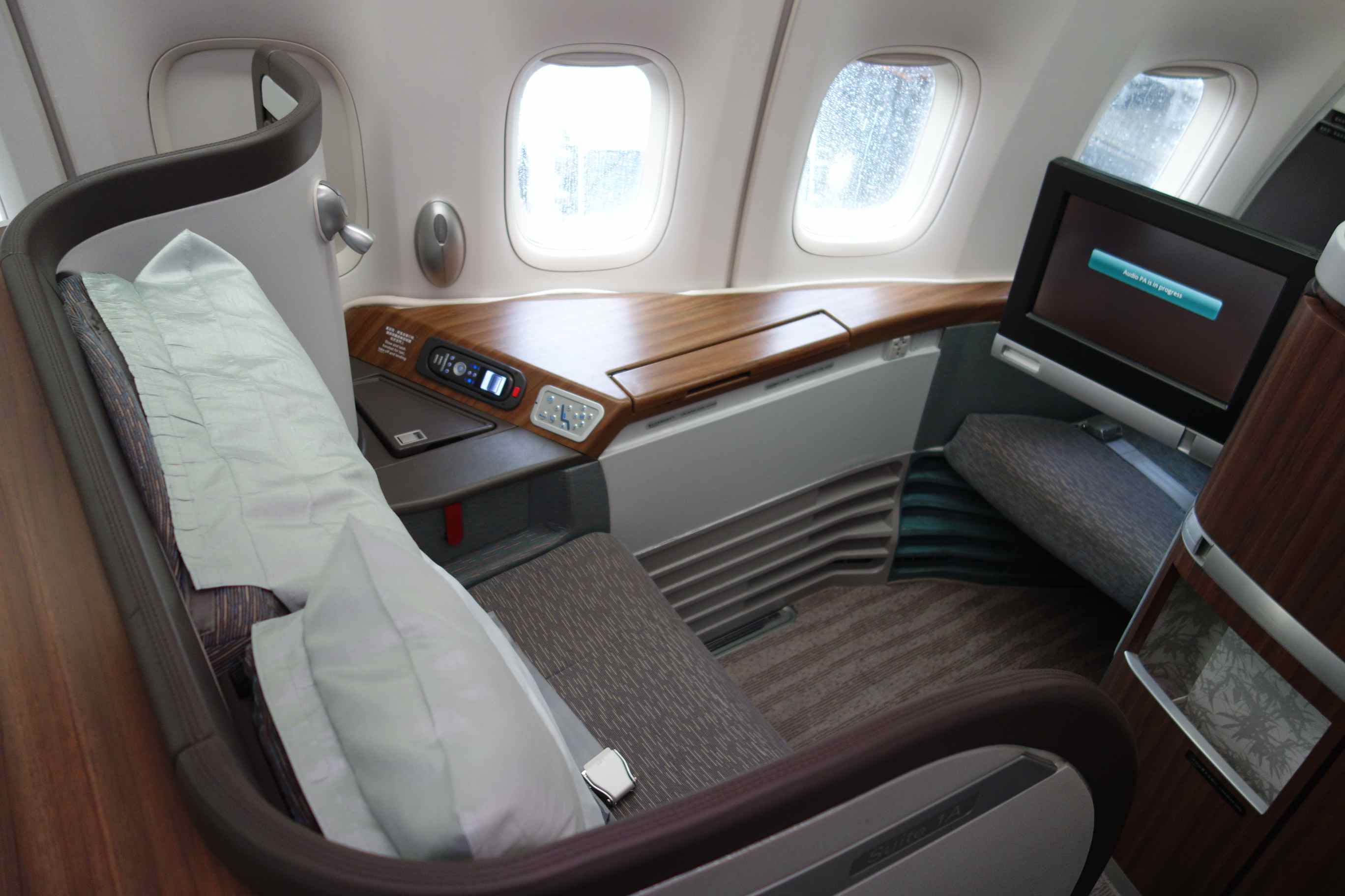 สายการบินคาเธ่ย์ แปซิฟิค เป็นสายการบินของ เขตปกครองพิเศษประเทศฮ่องกง ที่ให้คุณบินลัดฟ้าไปอย่างเรียบหรูแต่มีระดับ กับที่นั่ง ชั้นเฟิร์สคลาส ด้วยโซนพื้นที่ส่วนตัว เบาะที่นั่งทำจากวัสดุและเฟอร์นิเจอร์อย่างดี สามารถปรับเอนนอนได้ในทุกท่วงท่าที่ต้องการ พร้อมสิ่งอำนวยความสะดวกด้านความบันเทิงอย่างครบครัน ไม่ว่าจะเป็นจอทีวีแบบแบนส่วนตัว ชุดหูฟัง พร้อมบริการเสิร์ฟอาหารชั้นเลิศไว้บริการให้คุณประทับใจ