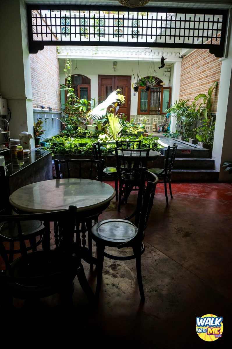 ด้านหลังก็จะมีโต๊ะน้ำชา สามารถมานั่งจิบชา กาแฟ ตรงนี้ได้นะ