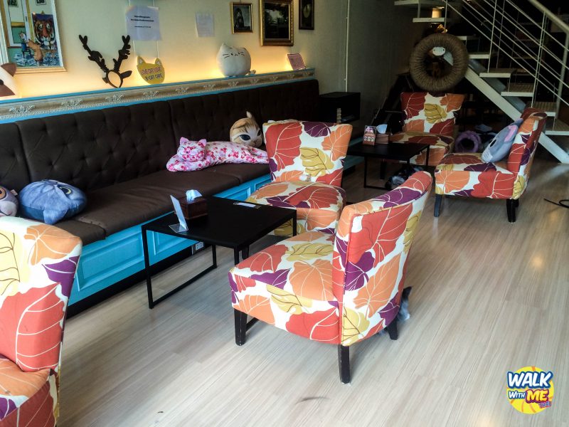 ภายในร้านจะมีโซนทานอาหาร และโซนน้องแมวนะ มีทั้งอาหารคาวและหวาน