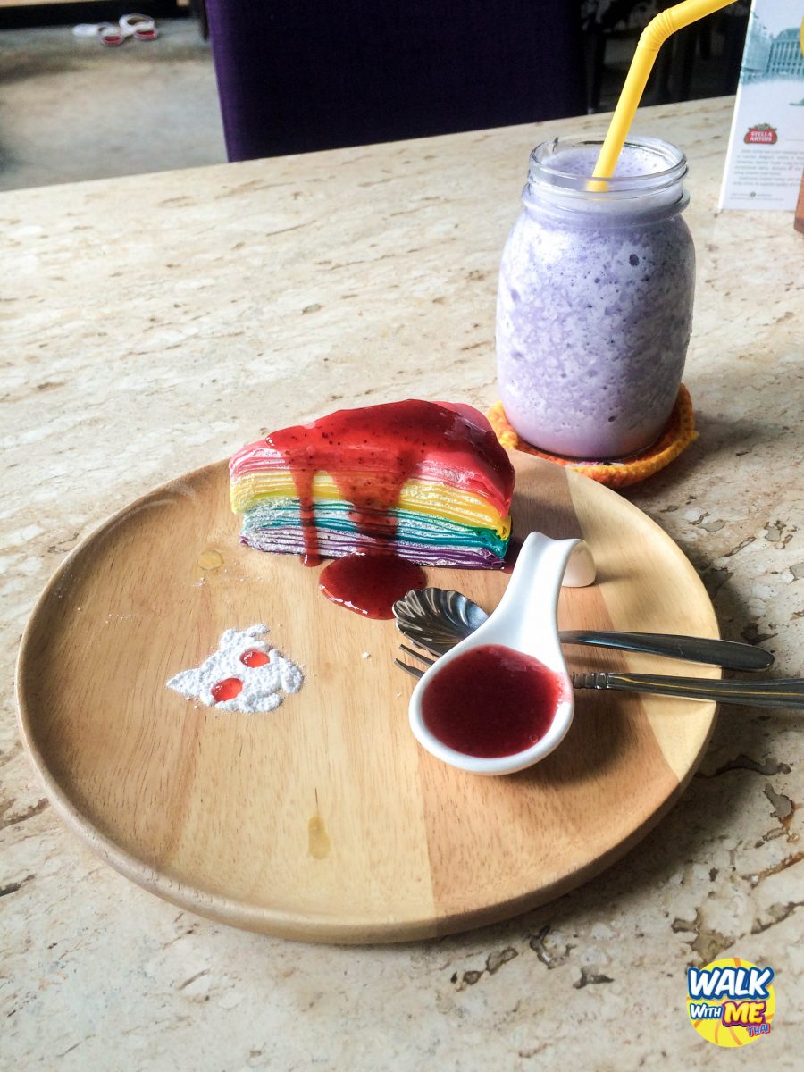 ดูแมวนอนละแบบ สบายจังนะไอ้เหมียว ใครเป็นคนรักน้องแมว ก็สามารถมาสั่งอาหารทานไป เล่นกับแมวไปได้นะนี่ไงเมนูของเรา เครปเค้กสีรุ้ง