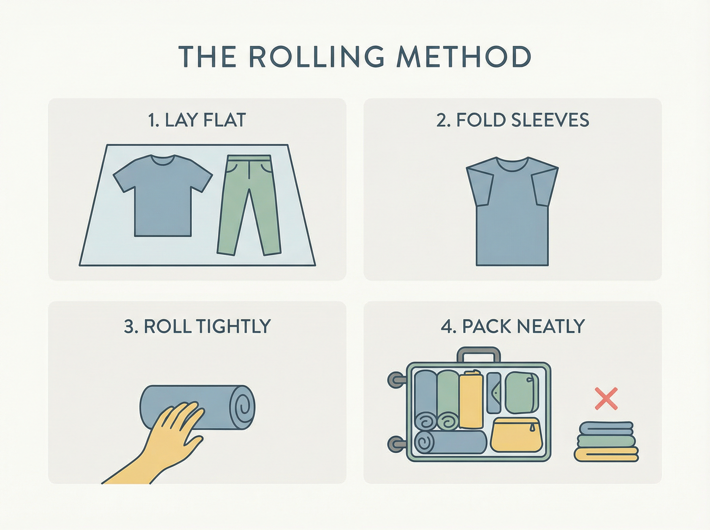 การพับผ้าใส่กระเป๋าเดินทางอย่างถูกวิธีช่วยให้เสื้อผ้าไม่ยับ ใช้พื้นที่ในกระเป๋าเดินทางได้คุ้มค่า ลดน้ำหนักส่วนเกิน และทำให้การเดินทางสะดวกขึ้นอย่างชัดเจน