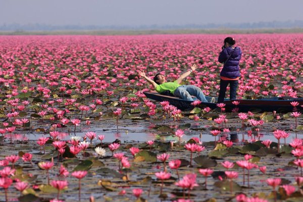 หนองหาน คือ ทะเลสาบน้ำจืดขนาดใหญ่ที่กินพื้นที่ส่วนใหญ่อยู่ใน อ.กุมภวาปี กับบางส่วนในพื้นที่ อ.ประจักษ์ศิลปาคมของ จ.อุดรธานี ซึ่งในช่วงเดือนมกราคม บัวแดงนับหมื่นดอก จะชูช่อแตกกอเต็มบึง อวดสีสันชมพูแดงอร่ามไปทั่วท้องน้ำ สามารถนั่งเรือชมได้แบบ