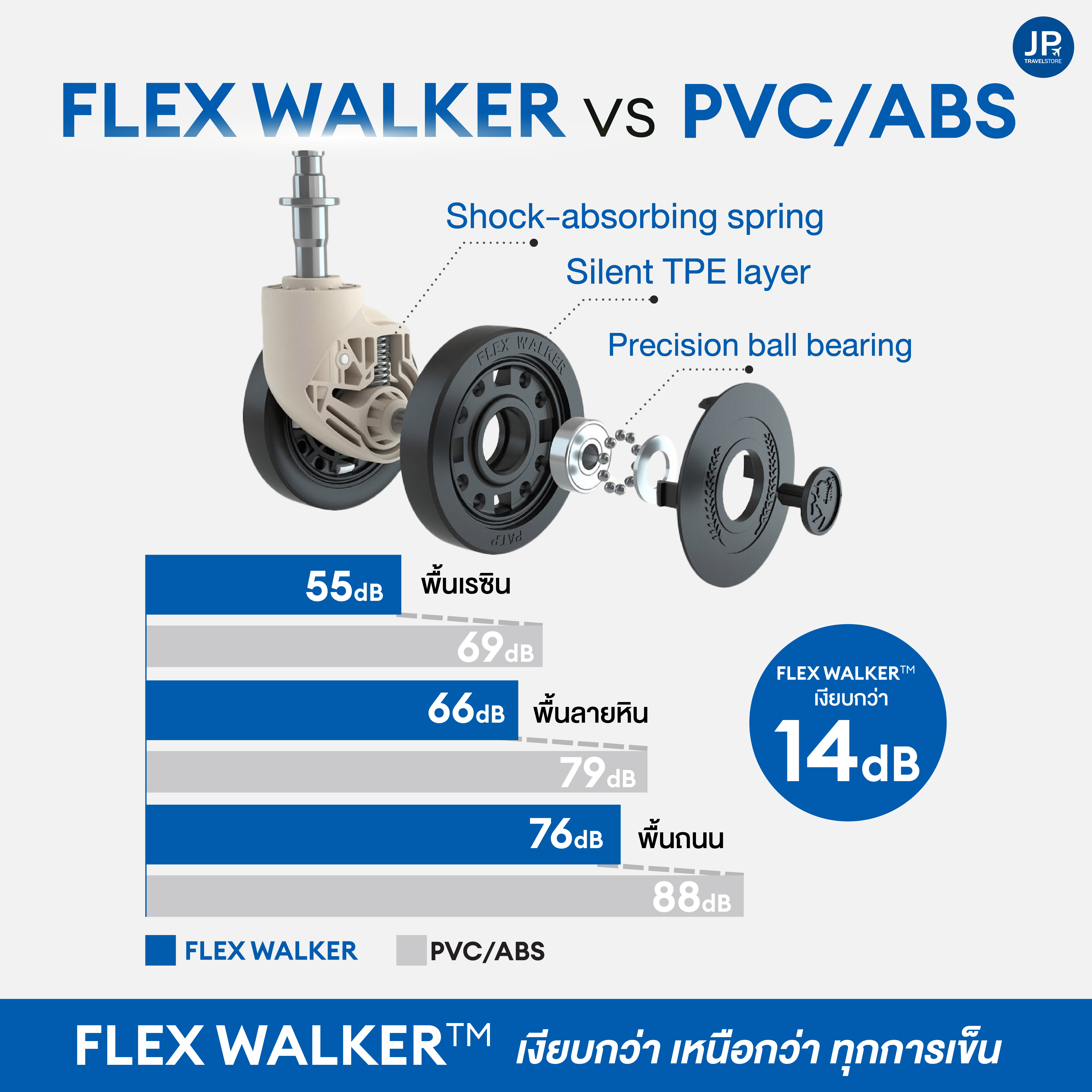 • ล้อคู่ 4 คู่ “Flex Walker” สปริงในตัวดูดซับแรงสั่นสะเทือนจากพื้นผิวถนน ยางทำจาก TPE ที่เงียบมาก โครงสร้างลูกปืนช่วยให้วิ่งได้อย่างราบรื่น