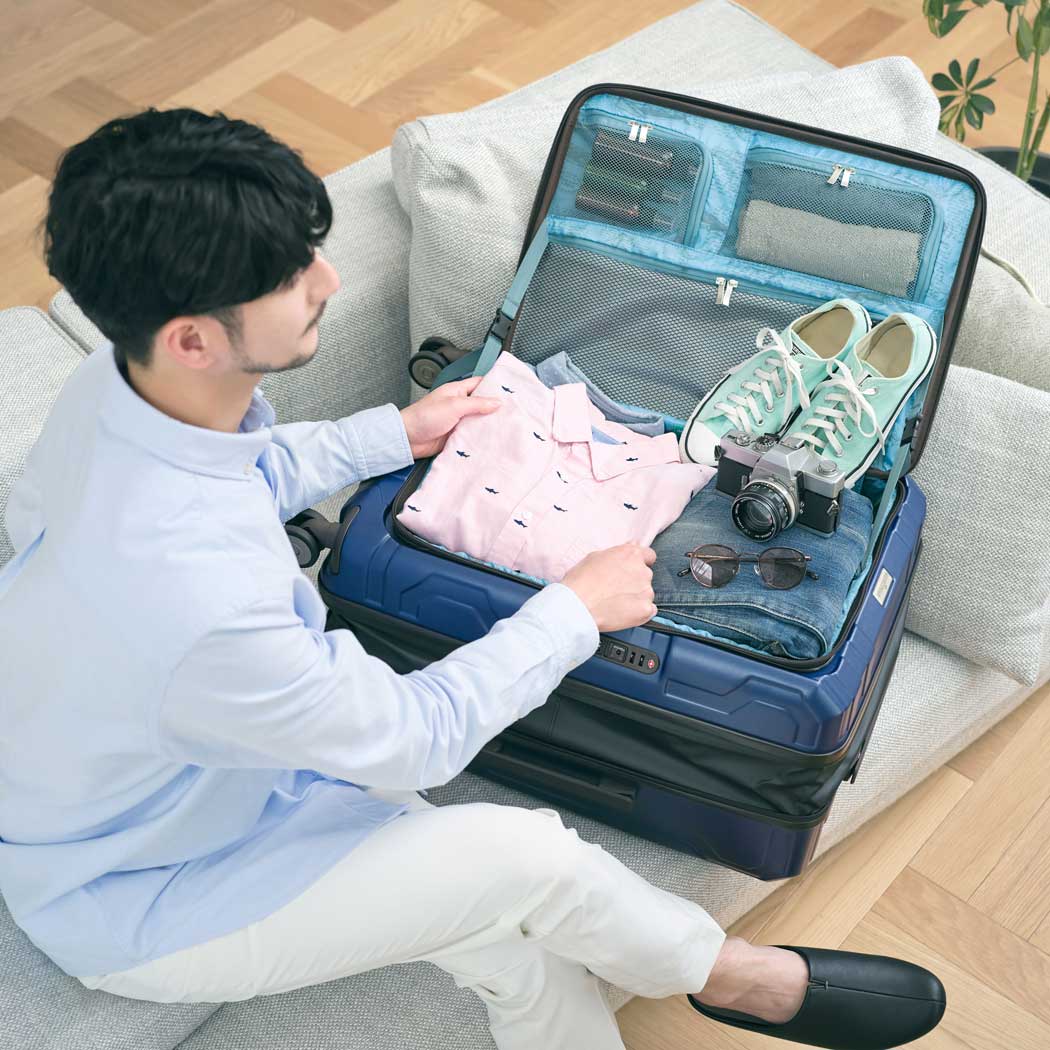 • กระเป๋าเดินทางแบบฝาหน้า เปิดด้านหน้า สะดวกต่อการหยิบของสัมภาระ