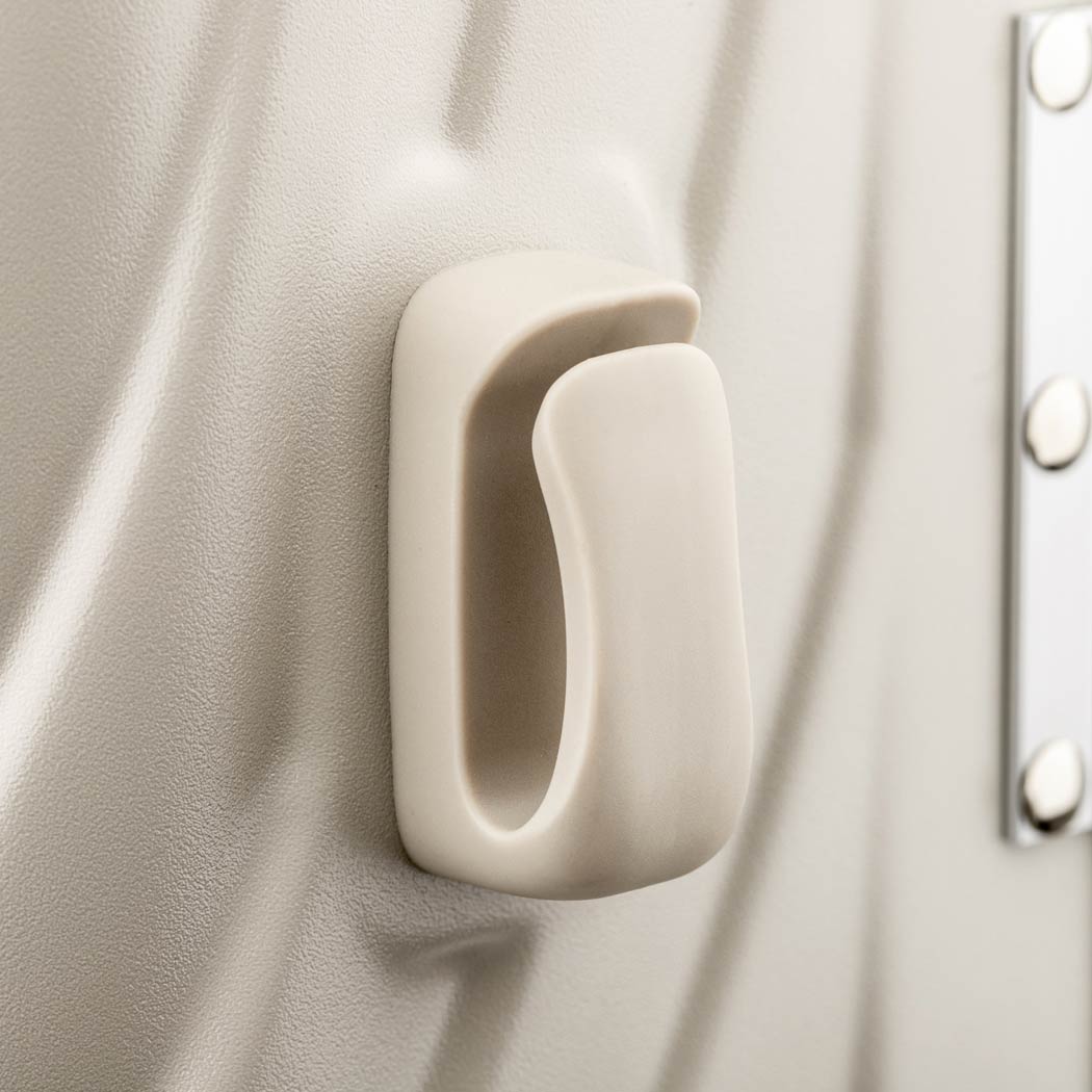 และ พิเศษยิ่งกว่า บริเวณด้านบนของแผ่นกั้นยังติดตั้ง ตะขอแขวน ที่สามารถนำไปแขวนในห้องน้ำหรือบนราวแขวนผ้า เพิ่มความสะดวกสบายและสะท้อนความพิถีพิถันในทุกรายละเอียดการเดินทาง